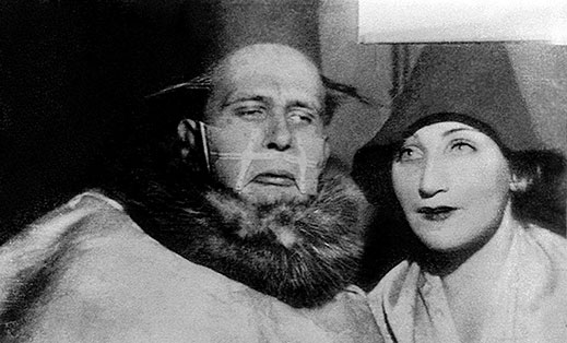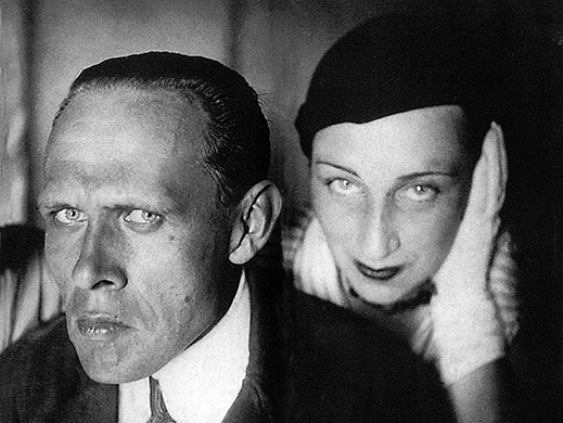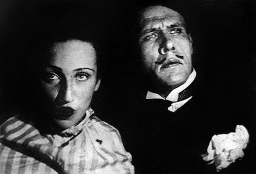 Даниил Хармс и Алиса Порет позируют для “домашнего фильма” “Неравный брак”. Фотография П. Моккиевского, начало 1930-х.