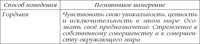 Я уже писал о том, что любое поведение человека имеет своё позитивное намерение. Гордыня, как способ мышления и восприятия окружающего мира, тоже имеет позитивное намерение. Оно многогранно. Это и стремление к совершенству, и желание чувствовать себя спокойно и комфортно, и желание заявить о себе на весь мир.