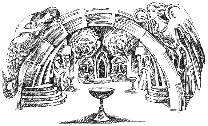 Пространство стало более широким, на стенах висели факелы, которые горели необычным пламенем – огонь был почему-то синеватого оттенка. Затем группа будущих учеников вышла в зал огромных размеров. Это было действительно просторное помещение, которое само занимало пространство не меньше пятиэтажного здания. На сводах и на потолке красовалась роспись, отовсюду смотрели Лики Богов, Богинь, Героев. Виднелись различные надписи на Древних и Священных Языках. В центре помещения стоял алтарь, возле которого полукругом располагались Кумиры – трёхмерные изваяния Богов, Богинь, Духов и других запредельных Сил. Возле Алтаря стоял зрелый мужчина в льняном облачении до пят. Цвет его одежды был средним между белым и серым. Длинные густые волосы с редкой сединой спадали ниже уровня плеч. Ярослав приметил, что у него широкий пояс. Он вспомнил, как Отец ему рассказывал, что широкие пояса носят Жрецы – Хранители Древней Мудрости. Значит, перед ними один из Жрецов, настоящих Жрецов и Мудрецов. Это был первый настоящий Жрец, которого мальчик увидел на своём Жизненном Пути. До того он только слышал о них от своих Родных.