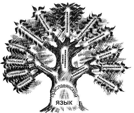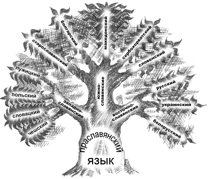 Вот посмотрите на Древо Славянских языков. Оно поможет вам понять, как разрослись многие языки из одного корня. Пометьте себе это схематически в свои Жреческие книги и запомните это раз и навсегда.