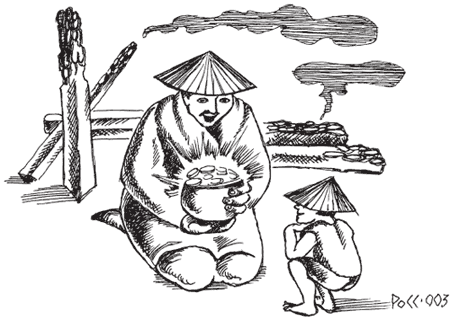 Мастер путешествовал со своими учениками. Однажды вечером они попросились на ночлег в богатый дом. Хозяин нехотя пустил их переночевать, кинул им в конюшне охапку сена, подал один кувшин с водой и кусок чёрствой лепёшки. Наутро мастер велел ученикам собрать все деньги, которые у них были, и отдать их с благодарностью хозяину.