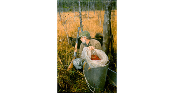Ну до чего ж урожайный на клюкву год случился! Ягоды была прорва, и я выцыганил целый день под конец своего сафари для ее заготовки. Работенка донельзя тяжкая, ежели к ней серьезно подходить: захватываешь своей широкозахватной «хапугой»5050