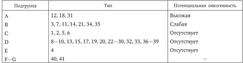 Таксономические группы вирусов часто содержат подгруппы, включающие в себя типы вирусов. Примером могут служить аденовирусы (табл. 2).