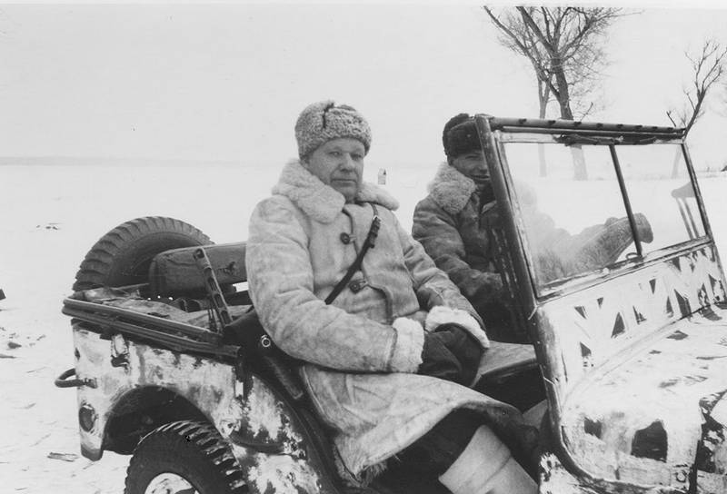 Командующий 7-й гв. армией генерал-лейтенант М.С. Шумилов в Сталинграде перед отбытием в район г. Белгорода. Конец февраля 1943 г. (РГАКФД)
