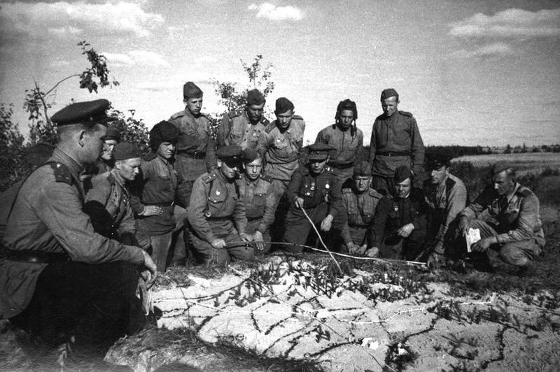 Тренировка командиров 27 гв. тбр на макете местности. Июнь 1943 г. (РГАКФД)