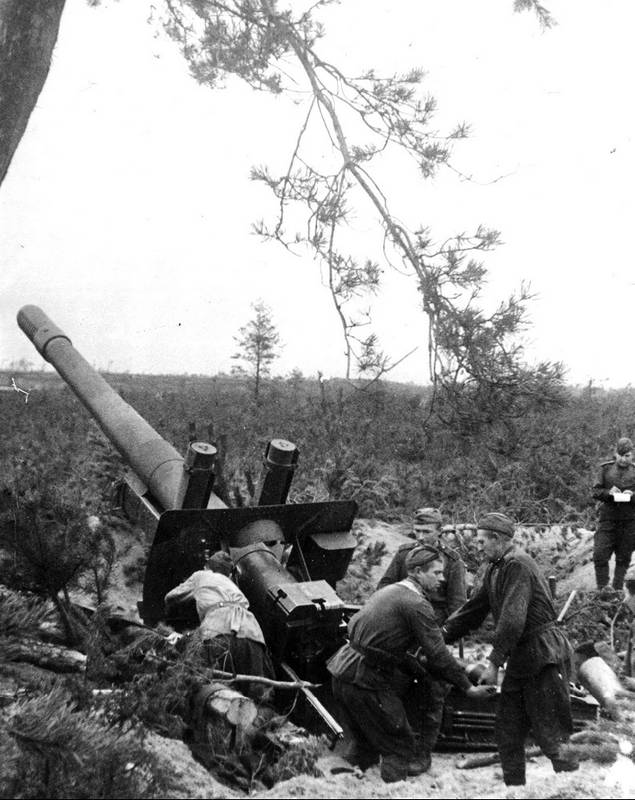 Дивизион 265-го пушечного артполка 7 гв. А обстреливает переправы противника на р. Северский Донец. Июль 1943 г. (Архив автора)