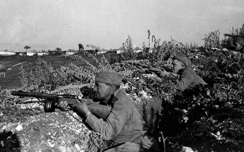 Бойцы 73 гв. сд ведут бой в районе совхоза «Батрацкая дача». Июль 1943 г. (Архив В.Н. Замулина)
