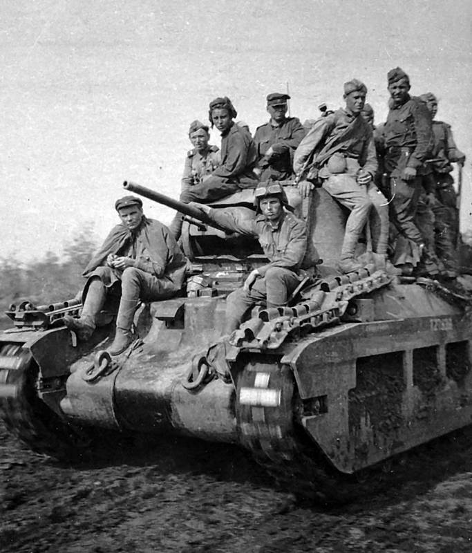 Выдвижение танков Мк-2 «Матильда» с десантом на борту подразделений 201 отбр к переднему краю. 9 июля 1943 г. (Фонды Государственного историко-мемориального музея-заповедника «Сталинградская битва»)