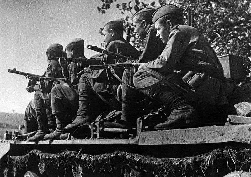 Танкодесантная рота 27 гв. тбр 7 гв. А в ожидании сигнала к атаке. 12 июля 1943 г. (РГАКФД)