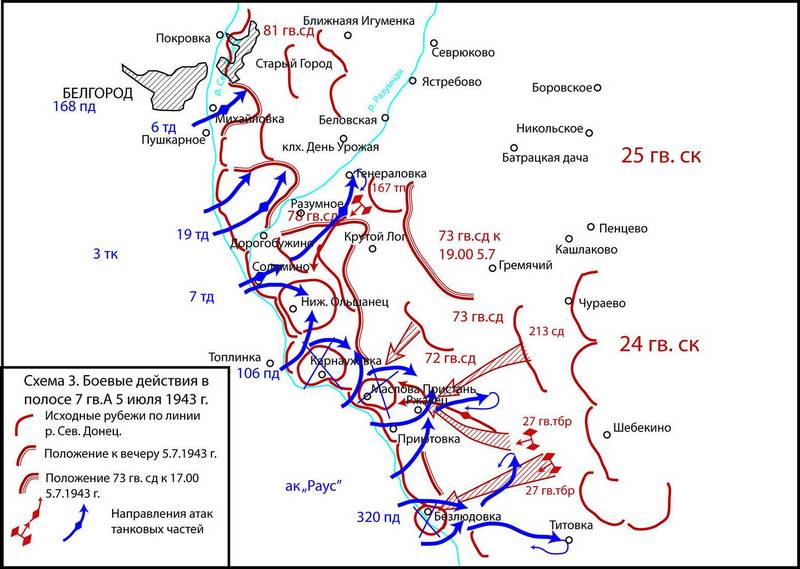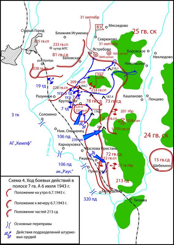 2 По данным штаба 213 сд, после боёв в 702 сп вернулось 358 человек, числившихся как пропавшие без вести, поэтому цифры потерь потом за все дни были скорректированы и за период с 5 по 10 июля составили 2757 человек.