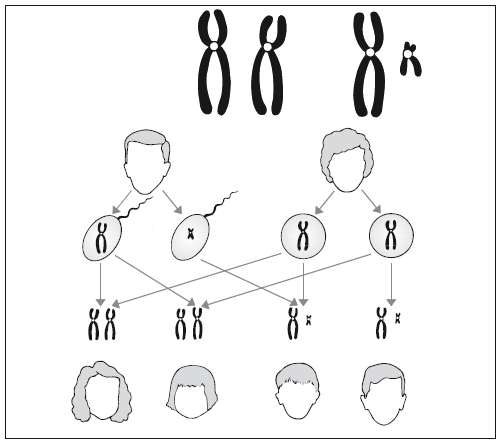 Женская яйцеклетка всегда содержит одну Х-хромосому. Сперматозоиды несут в себе либо такую же Х-хромосому, либо – Y-хромосому. При соединении с яйцеклеткой (собственно зачатие) получается сочетание хромосом либо ХХ, либо ХУ В первом варианте родится девочка, а сочетание ХY приведет к развитию из оплодотворенной яйцеклетки мальчика.