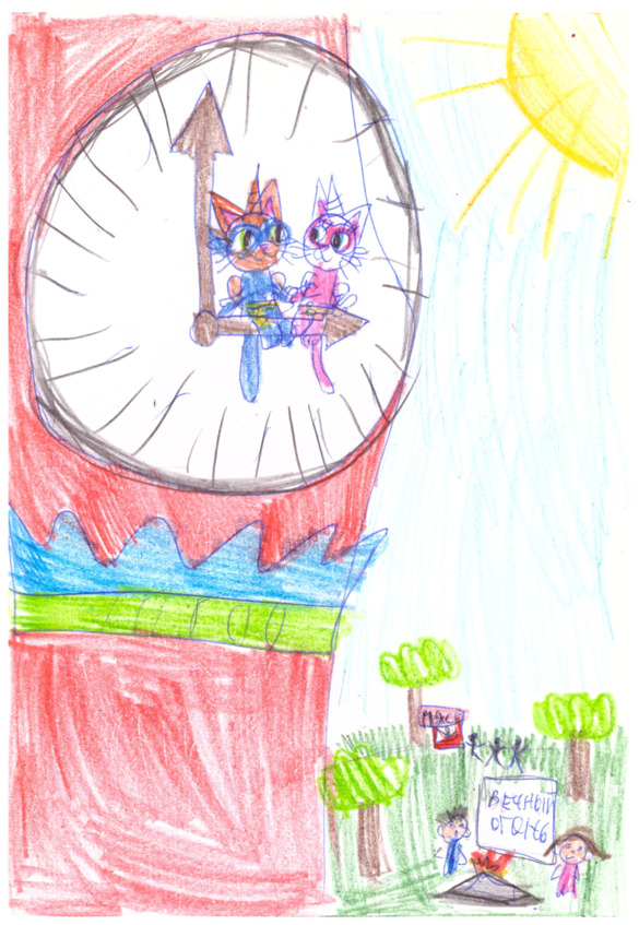 Котята пошарили в караманх супер-костюмов. У Пушки в кармане нашлось 100 р., а у Озри 50 р. Озри снял свою супер-маску, отошел и положил на землю. И начал танцевать. Танцевал лн брейк данс. Прохожие ахали, когда видели танцующего котенка! И скоро в супер-маске Озри было много монет. Озри высыпал их в карманы супер-костюма и одел свою супер-маску. Посчитал, получилось 50р. Он разменял их у прохожего кота и получил бумажную купюру 50 р. Котята совместили и у них получилось 200 р. И на эти деньги котята купили в этом ларьке «МЯСО» рыбный стейк. Разделили его напополам и съели. А потом решили начать спасать вечный огонь. Они стали аликорнами, взлетели над Красной площадью и подлетели к Спасской башне. Они уселись на стрелки курантов и взглянули вниз – там было полно людей и котов, и собак. Вечный огонь горел тускло. Деревья дымились. Котята не представляли – с чего начать операцию по спасению. Вроде сильного пожара и нет. И вообще пожара и нет. Как им всё это спасать?