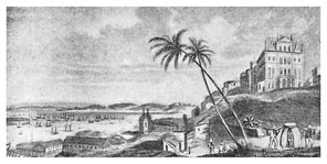 Жителей в Рио-Жанейро считается 120 тысяч; в том числе полагается 15 негров на одного белого. Войска же находилось при нас от 4 до 5 тысяч. Город сей считается первым торговым местом во всей Бразилии. Теперь здесь находится 60 английских торговых домов, которые отправляют отсюда великое количество сахарного песку, пшена сарачинского, хлопчатой бумаги и кофе; сии товары берут они за получаемые ими английские произведения. Здешняя область славится своим превосходным кофе, а Фернамбуко[191]191
