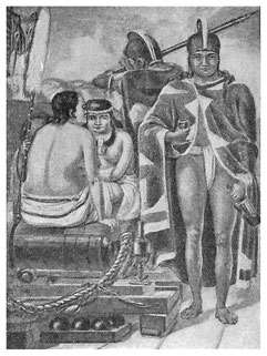 К вечеру, простившись с американцами, возвратился я на шлюп, а вскоре и Манини приехал для расчета со мною за доставленные нам вещи. Он привез с собою двух сандвичан, которых Бокки счел за нужное послать со мною на остров Атуай, чтоб успокоить жителей касательно нашего прихода: они могли подумать, что мы пришли им мстить по угрозам доктора Шефера, основавшего между ними компанейское заселение{242}и после ими изгнанного. Третий сандвичанин, молодой, проворный человек, сам назвался к нам в службу, прося неотступно взять его, а как у них не запрещается оставлять свое отечество и, по словам американцев, они великие охотники служить на европейских судах, то я и взял его, полагая, что он, узнавши русский язык, может быть весьма полезен Американской компании в торгах ее с Сандвичевыми островами. Имя сего сандвичанина Лаури, которое мы обратили ему в фамилию, назвав его Терентием, во имя святого того дня, когда он вступил к нам и как бы тем признал его своим покровителем.
