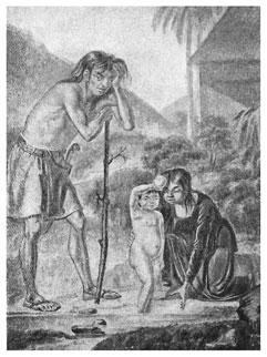 Все жители Марианских островов исповедуют католическую веру, и все они здешние уроженцы, кроме губернатора да еще двух или трех офицеров, на королевской шхуне сюда прибывших. Все здешние чиновники назначаются в должности и производятся в чины из природных жителей по выбору губернаторскому. Я об этом узнал от него самого, и довольно странным образом. Когда он в первый раз пригласил меня с офицерами к обеду, то, прежде нежели мы сели за стол, он меня спросил потихоньку, не противно ли мне будет обедать вместе с его офицерами и чиновниками, которые все из природных здешних жителей и им самим на места определены, а мы европейцы и получили чины от нашего государя. Здешние священники также из уроженцев островов сих, только воспитывают их в Маниле. Странная и неслыханная вещь в католических колониях, что на всех Марианских островах нет ни одного монастыря.