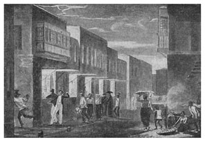 Утром 21-го числа ездил я на берег; на пристани встретил меня пехотный офицер, а потом капитан адмиральского корабля; он проводил меня к нашему комиссару, который в продолжение трех лет никого из русских не видал и был очень доволен моим посещением. Губернатор и адмирал не приезжали в город из своих сельских домов: первый извинялся делами, что отправляет почту, а другой болезнью; мне же по уложению острова нельзя было ехать за город; но мне позволили осмотреть город и пробыть в нем до ночи.