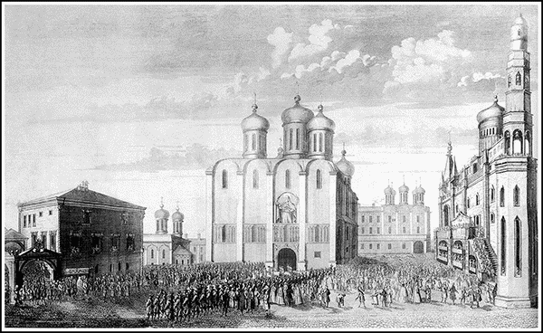 Церемониальная процессия на Соборной площади в день коронации Анны Иоанновны
