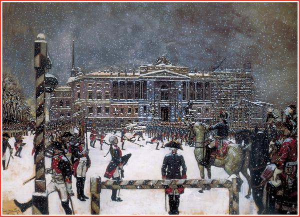 А. Бенуа. Парад при Павле I. 1907 г.