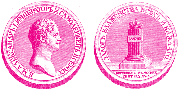 В первый раз увидали государя гуляющим в столице пешком, без всякой свиты и без всяких украшений, даже без часов, и приветливо отвечающим на поклоны встречных. Новое правительство поспешило прямо заявить направление, в каком оно намерено было действовать. В манифесте 12 марта 1801 г. император принимал на себя обязательство управлять народом «по законам и по сердцу своей премудрой бабки». В указах, как и в частных беседах, император выражал основное правило, которым он будет руководиться: на место личного произвола деятельно водворять строгую законность. Император не раз указывал на главный недостаток, которым страдал русский государственный порядок; этот недостаток он называл «произволом нашего правления». Для устранения этого недостатка он указывал на необходимость коренных, т. е. основных, законов, которых почти еще не было в России. В таком направлении велись преобразовательные опыты первых лет.