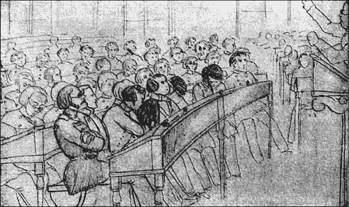 В момент этого перелома начали мы слушать Соловьева. Обыкновенно мы уже смирно сидели по местам, когда торжественной, немного раскачивающейся походкой, с откинутым назад корпусом вступала в словесную внизу (название аудитории. – Прим. ред.) высокая и полная фигура в золотых очках, с необильными белокурыми волосами и крупными пухлыми чертами лица без бороды и усов, которые выросли после. С закрытыми глазами, немного раскачиваясь на кафедре взад и вперед, не спеша, низким регистром своего немного жирного баритона начинал он говорить свою лекцию и в продолжение 40 минут редко поднимал тон. Он именно говорил, а не читал, и говорил отрывисто, точно резал свою мысль тонкими удобоприемлемыми ломтиками, и его было легко записывать, так что я, по поручению курса составлявший его лекции, как борзописец, мог записывать его чтения слово в слово без всяких стенографических приспособлений. Сначала нас смущали эти вечно закрытые глаза на кафедре, и мы даже не верили своему наблюдению, подозревая в этих опущенных ресницах только особую манеру смотреть; но много после, на мой вопрос об этом, он признался, что действительно никогда не видел студента в своей аудитории.