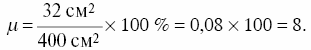 Fb – расчетная площадь сечения бетона. Например, общая площадь поперечного сечения рабочих стержней диаметром 20 мм составляет 32 см2, а расчетная площадь сечения бетона – 400 см2 (ширина умноженная на высоту фундамента). Таким образом Fa = 32 см2, а Fb = 400 см2, получаем:
