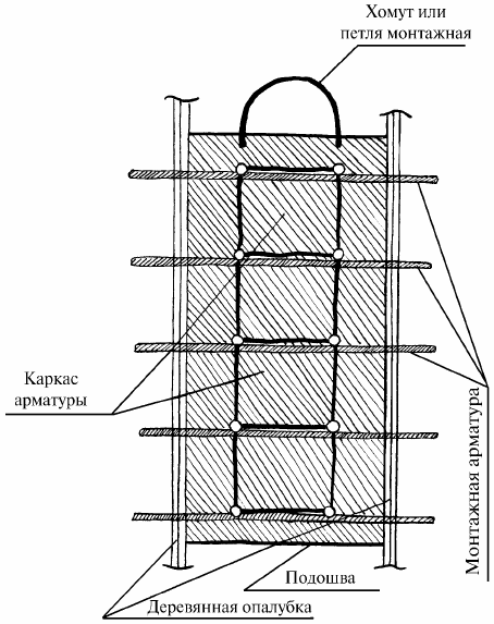 Распределительная арматура (в виде каркаса) служит для равномерного распределения нагрузок между рабочими стержнями и обеспечения их совместной работы, для чего стержни распределительной арматуры соединяются со стержнями рабочей арматуры посредством сварки или вязки стальной мягкой проволокой Ф 3–4 мм. Монтажная арматура служит только для сборки отдельных стержней в арматурный каркас (см. рис. 9).