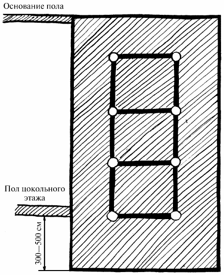 1) по цокольному этажу (с углублением в землю на глубину менее глубины фундамента на 30–50 см);