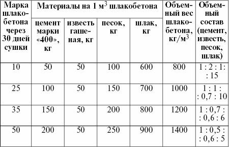 1) шлакобетон марки 10 применяется для теплоизоляции, марок 25, 35 и 50 – для наружных (несущих стен) и внутренних стен (перегородок);