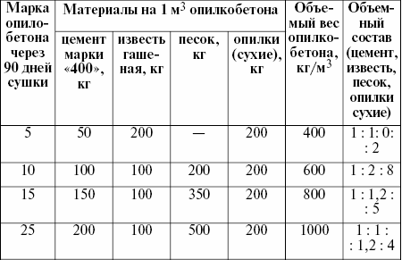 3) опилкобетон марок 5 и 10 применяется для теплоизоляции, марок 15 и 25 – для наружных и внутренних стен;