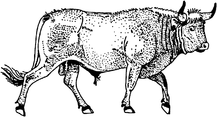 Достаточно взглянуть на корову древних египтян, длинноногую, с маленькой головой, чтобы понять, что она заимствована у скотоводов Сахары. Остальные народы получили ее более сложным путем. Сначала сахарская корова попала на острова Средиземного моря. На Крите, где она была священной, она красной масти, с лирообразными рогами, но с укороченными ногами. Укорочение ног понятно: на острове не нужно много кочевать. С островов быки попали на Балканский полуостров, где из-за грубой пищи стали короткошеими и большеголовыми. Здесь на них впервые надели ярмо. С Балканского полуострова, запряженные в повозки с ярмом, быки проникли на Ближний Восток с севера, где оказались в руках земледельцев.