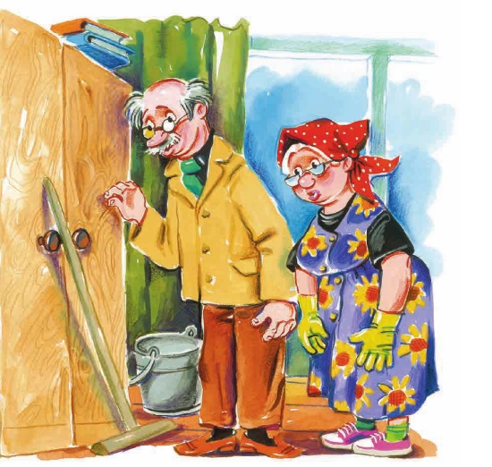 Он сунул книгу бабушке, но она зевнула и выронила её из рук. Он поднял с пола книгу и опять отдал бабушке.