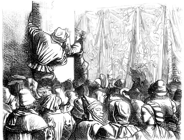 Народ больше всего теснился в проходах Дворца правосудия, так как было известно, что прибывшие третьего дня фламандские послы намеревались присутствовать на представлении мистерии и на избрании папы шутов, которое также должно было состояться в большой зале Дворца.
