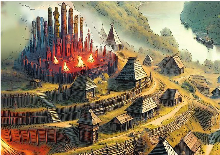 Для начала на высоком холме за своим теремом он приказал соорудить кáпище, на котором установили деревянные изображения всех самых почитаемых богов – куми́ры. Там можно было увидеть Хóрса – бога солнца, Даждьбóга – подателя всяческих благ и добра, Стрибóга – бога ветров, Симáргла – бога огня и Мóкошь – богиню плодородия, покровительницу женщин и семейного счастья. Самое почётное место было отведено Перуну – богу молнии, покровителю мужчин и воинов; его голову покрыли серебром, а усы – золотом. На капище никогда не потухал огонь, который поддерживали волхвы, они же приносили идо-лам жертвы, случалось и человеческие.