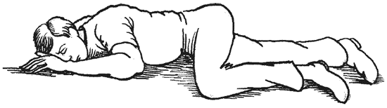 Выдвиньте руку и ногу лежащего на боку пострадавшего. Оттяните челюсть вперед, чтобы убедиться, что язык расположен в передней части рта и не блокирует прохождение воздуха. Ослабьте плотно прилегающую одежду.