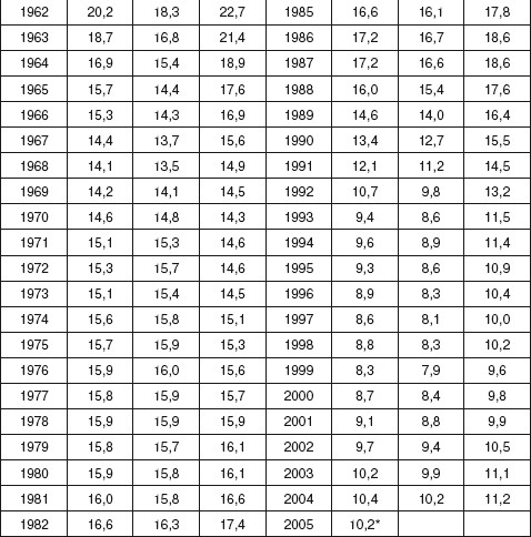 Источник: Демографический ежегодник России 2005. М., 2005. С. 69–71. За 2005 г. – оперативные данные Росстата (http://www.gks.m/bgd/free/B05_00/IssWWW.exe/Stg/d120/08-00.htm).