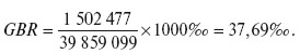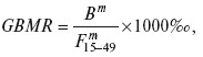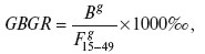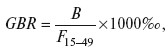 где: GBR – специальный коэффициент рождаемости; B – абсолютное число рождений за год; F15–49 – среднегодовая численность женщин репродуктивного возраста.
