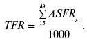 Деление на 1000 производят, чтобы привести значение коэффициента к одной женщине. На практике, поскольку данные о повозрастной рождаемости публикуются по 5-летним возрастным интервалам, пользуются следующей формулой: