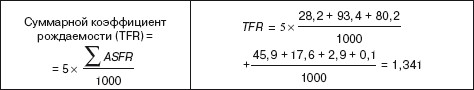 Суммарный коэффициент рождаемости суммирует повозрастные коэффициенты для всего репродуктивного периода, т. е. для всего интервала 15–49 лет. Но такое суммирование можно производить и для любого возраста в пределах репродуктивного периода.