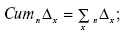 • кумулята доли суммарной рождаемости (CumnΔx), приходящаяся на возрастной интервал (x+n) лет: