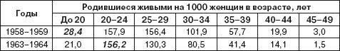 Приведенные данные характеризуют процесс снижения рождаемости, ту его составляющую, которую демографы не совсем правильно называют откладыванием рождений. Особенно ярко это видно по данным, приведенным в последней колонке таблицы.