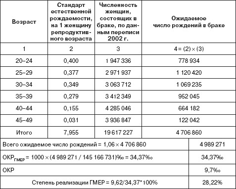 [Закрыть]. Альтернативный подход, также предложенный Борисовым, заключается в том, что гипотетическое число рождений, получаемое умножением реальной возрастной структуры на стандарт ГМЕР, корректируется с помощью поправочного коэффициента, величину которого Борисов определил равной 1,06[361]361