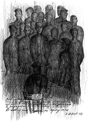 Фрагмент рисунка «Смерть Сергея Канцырева»