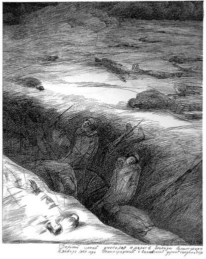 По дороге в Ленинград я увидел ещё немало погибших от голода, замороженных людей, но молодой солдат стоял у меня перед глазами, и я думал о нём не переставая.