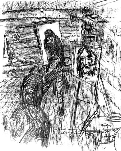 Мы вынесли художника, уложили на сани и отвезли на кладбище, а в мастерской на мольберте остался жить его неоконченный автопортрет