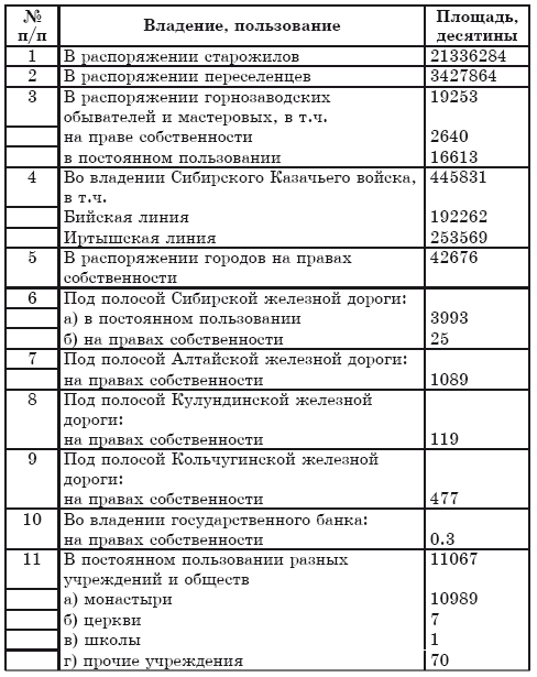Распределение земель Алтайского округа по состоянию на 1 января 1916 года по [18]
