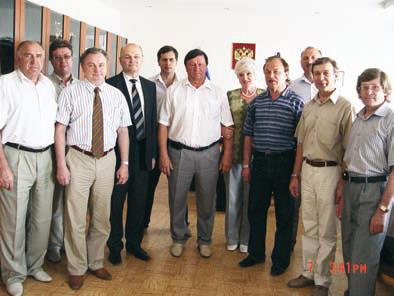 Рис. 46. Участники совещания в с. Алтайское (август 2009 г.) по проекту игорной зоны «Сибирская монета». В центре – зам. главы администрации края М.П. Щетинин, глава администрации Алтайского района В.П. Коршунов, директор ООО «Алтайгипрозем» Р.В. Дудкин