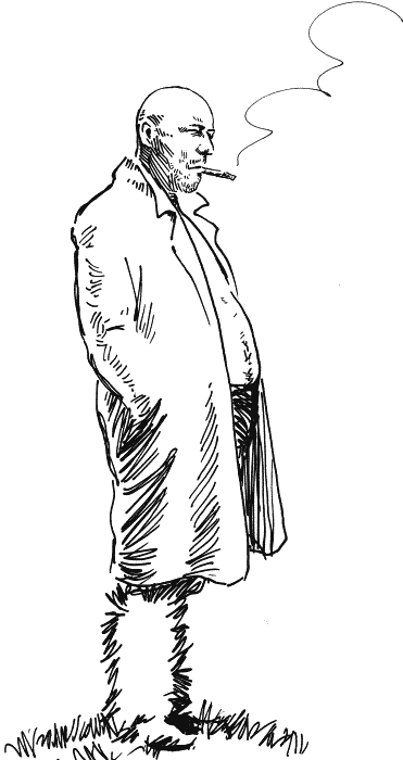 ГРАЖДАНИН В ПЛАЩЕ молчит.