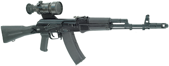 • 7,62 мм модернизированный автомат Калашникова с планкой для крепления ночного прицела АКМН, индекс 6 П1 Н;