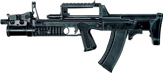 Такое конструктивное решение позволило устранить и другой недостаток схемы «буллпап» – чрезмерную концентрацию пороховых газов в зоне лица стрелка: ствольная коробка выполнена закрытой. Это исключает также попадание грязи внутрь коробки.
