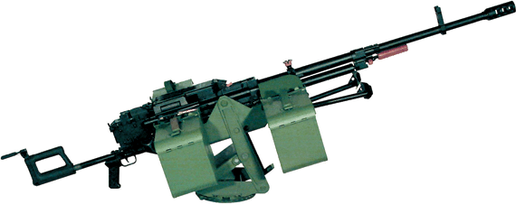 КОРД – первый в мире крупнокалиберный пулемет, который может вести огонь с сошек, а при необходимости – даже с рук. Такая возможность обеспечивается в варианте пулемета 6 П57 (прежний индекс 6 П50–1). Это базовый пулемет 6 П50 на станке с сошками 6 Т19, позволяющем вести стрельбу с неподготовленной позиции на грунте, из окопа, сооружений, платформ транспортных средств, при любых удобных положениях стрелка.